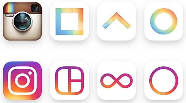 In fig.02 vediamo il restyling delle icone dei pulsanti di Instagram. In questo caso la decisione principale riguarda i colori, ma anche la stilizzazione delle forme e l’adozione di una grafica “flat”.