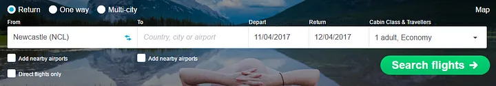 Si può vedere un ampio uso di default intelligenti nei siti per l’acquisto dei biglietti per i mezzi di trasporto. In figura si possono notare diverse tipologie di valori predefiniti impostati dal sito: nella parte superiore troviamo già selezionata l’opzione di andata e ritorno che probabilmente il sito avrà registrato come la più probabile, un discorso analogo lo si può fare per la selezione delle date e quella del numero di passeggeri; per quanto riguarda la stazione di partenza invece il sito molto probabilmente utilizza i dati di geolocalizzazione del dispositivo da cui si sta effettuando l’operazione impostando di default la stazione più vicina, infine per la stazione di arrivo il sito lascia un valore nullo in quanto sarebbe impossibile determinare un’opzione che possa andare bene per la maggior parte dei fruitori del servizio.
