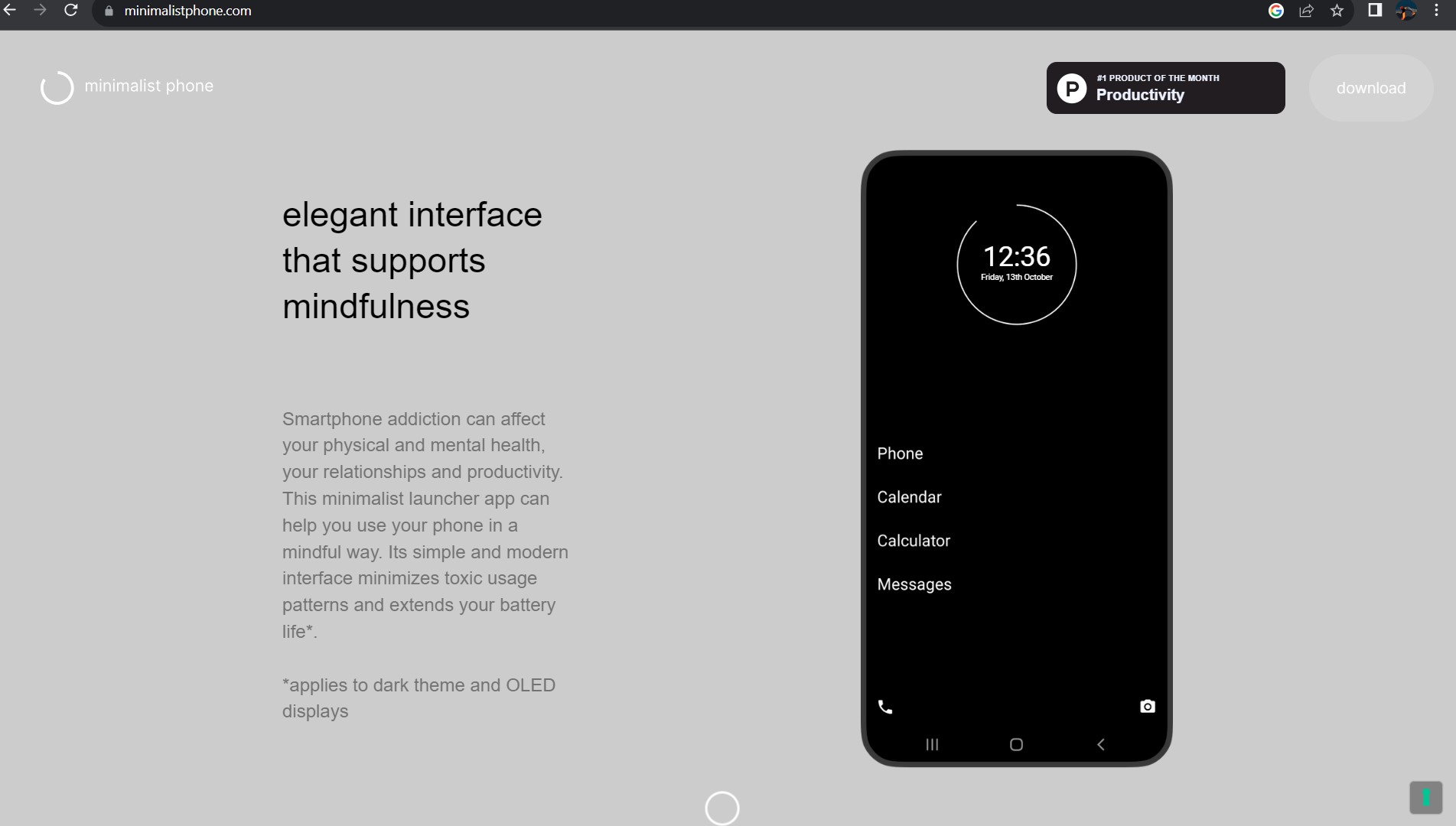 in fig. 01 il sito minimalist phone offre la possibilità di minimizzare la grafica del proprio telefono, nascondendo elementi importanti per l’identificazione e l’uso delle applicazioni o complicando il processo di comunicare con i propri contatti. Ironicamente, anche trovare dove si disinstalla l’applicazione è complicato.