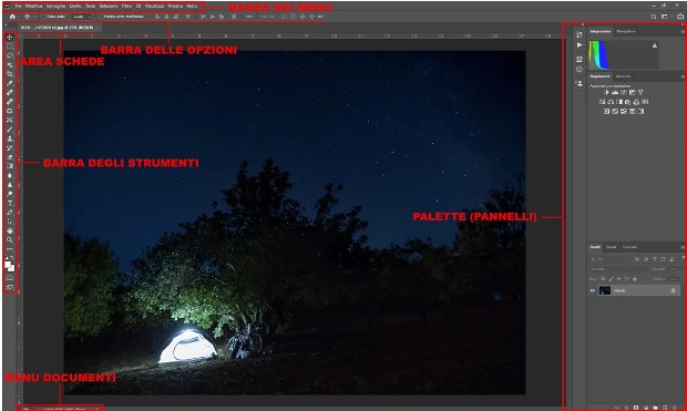 Un ottimo esempio è l’interfaccia di photoshop (fig.01) la quale fornisce agli esperti che ne fanno uso tutti i comandi necessari lasciando l’immagine, che è il punto chiave del progetto, al centro dell’interfaccia.