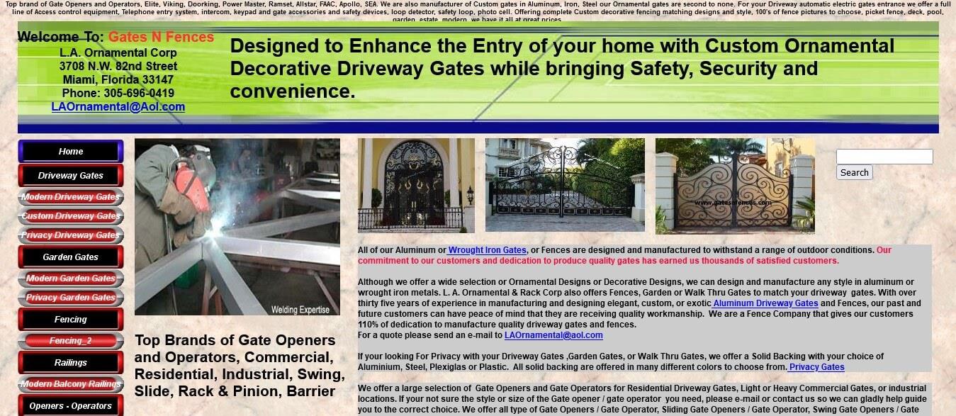 Visitando il sito web di Gates N Fences, è come se fossi tornato indietro nel tempo fino al 2004. Quando guardi la macchina WayBack, è chiaro che questo sito è rimasto pressoché invariato da allora. Questo sito Web è così obsoleto che è difficile credere che siano ancora attivi nel settore.