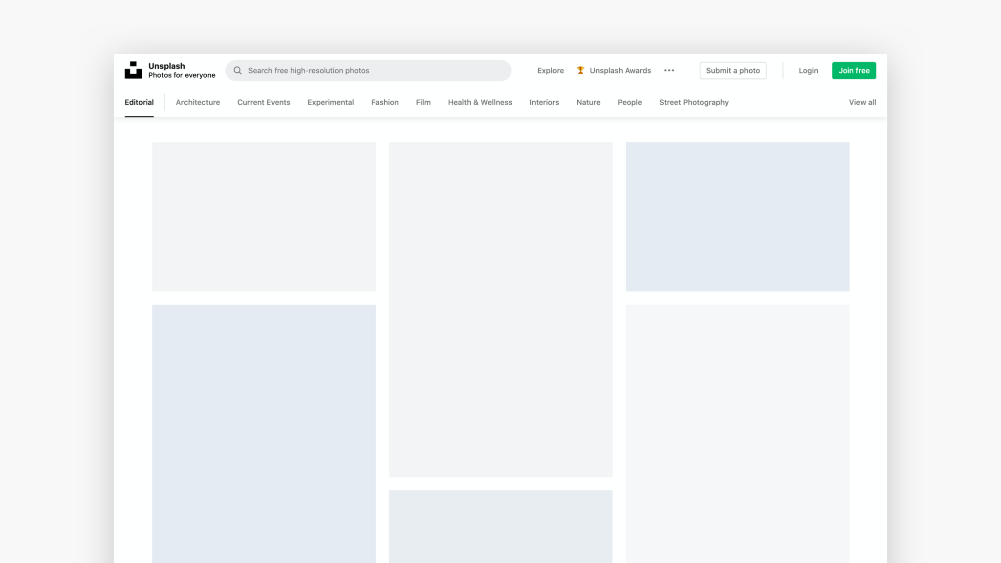 In fig.03 possiamo notare invece uno schermata-scheletro il quale è una pagina, senza testo o immagine, che riflette la struttura della pagina da visualizzare. Mostrano all’utente che la pagina sta caricando. Le schermate di caricamento dello scheletro offrono agli utenti qualcosa da guardare mentre aspettano, questo consente una prima lettura veloce della struttura della pagina e rimuove la sensazione di perdita di tempo per l'utente. Concentrano la sua attenzione sui progressi piuttosto che sul tempo di attesa.