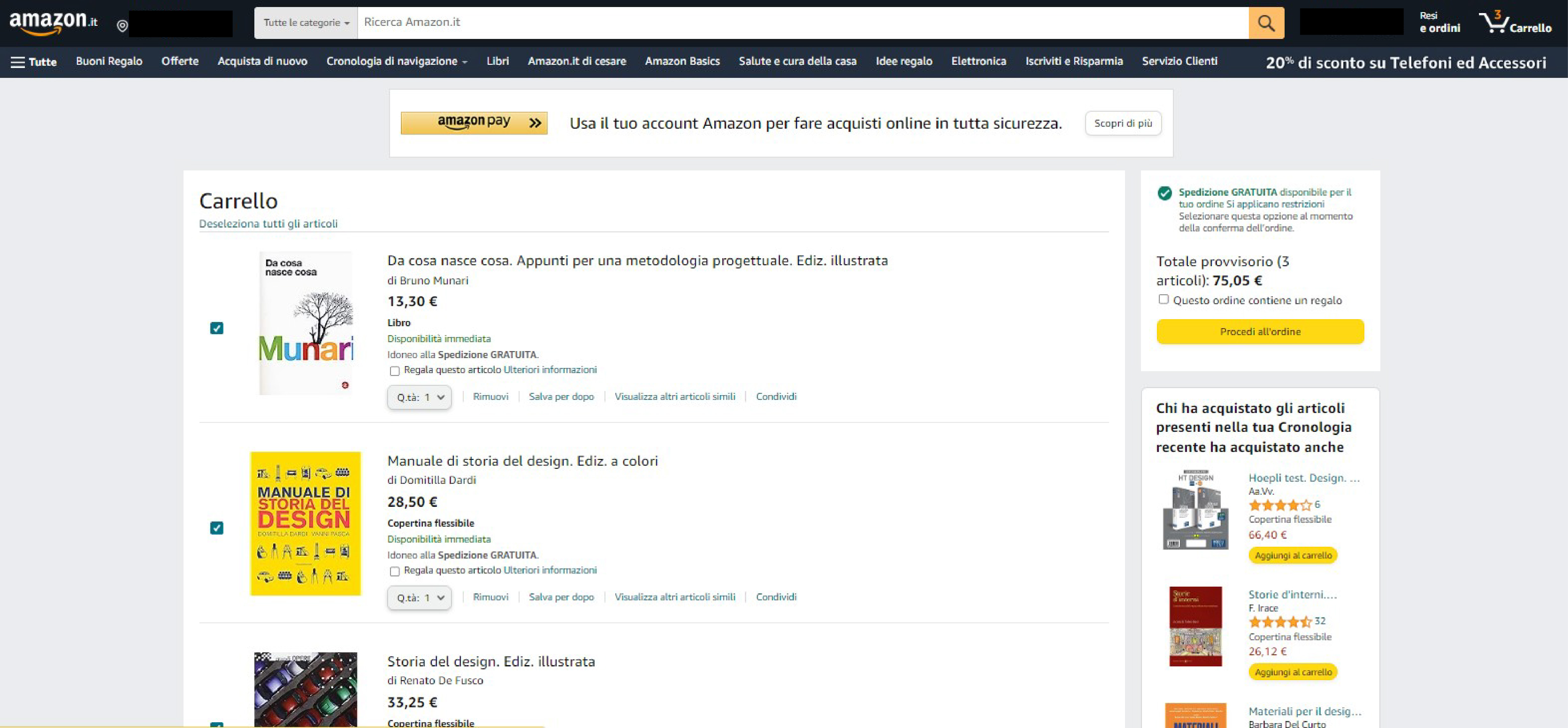 In fig.01 vediamo come Amazon offra una funzionalità chiamata "Carrello" che consenta agli utenti di tenere traccia e conservare gli articoli che desiderano acquistare in futuro lasciando cioè la possibilità di ponderare le decisioni.
