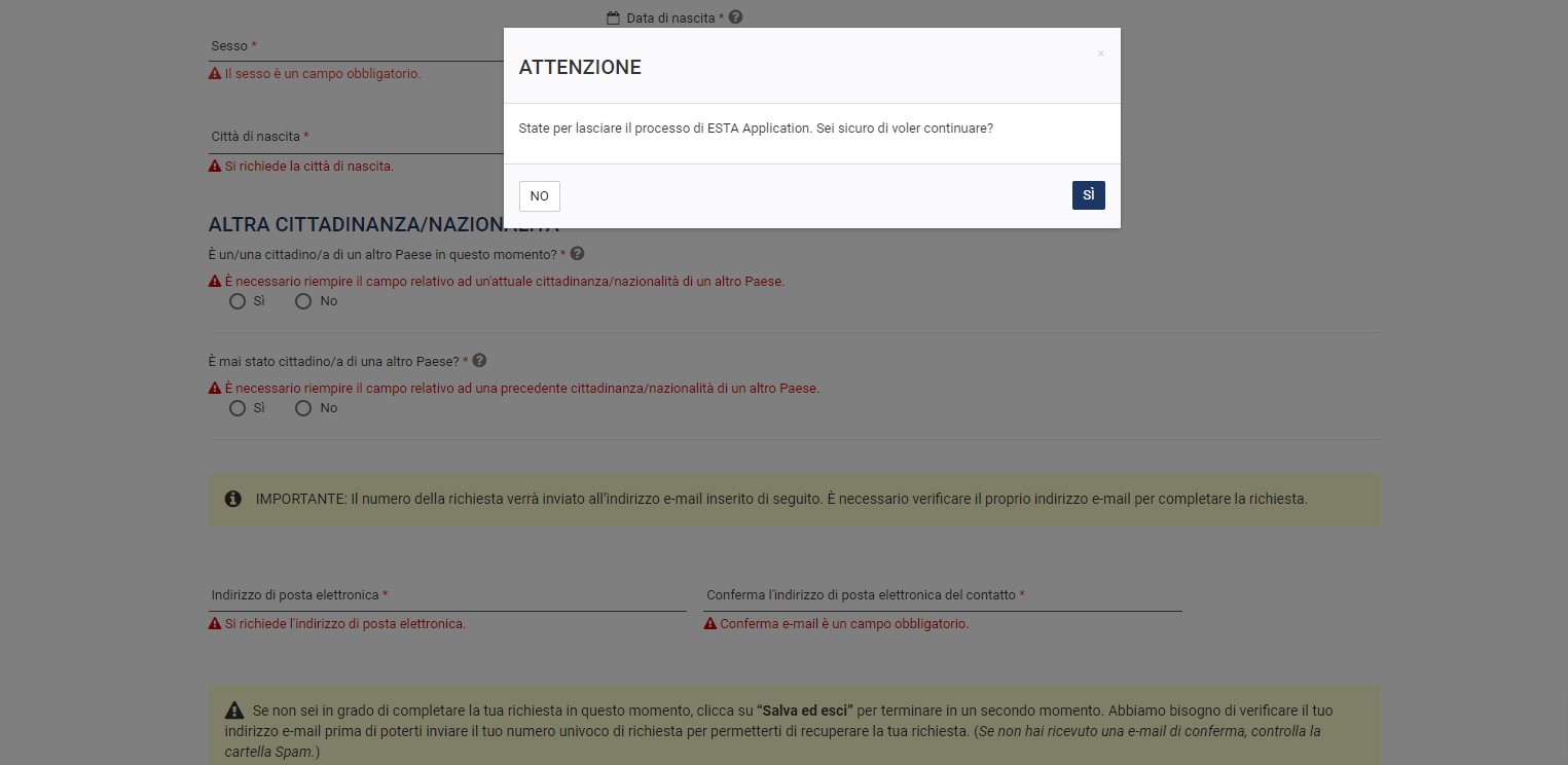 Gli utenti non dovrebbero mai sentirsi vincolati in percorsi da cui non possono uscire liberamente, come l'interruzione di un'operazione o il suo rifacimento. Le indicazioni di uscita non dovrebbero essere ambigue o progettate con un feedback negativo.