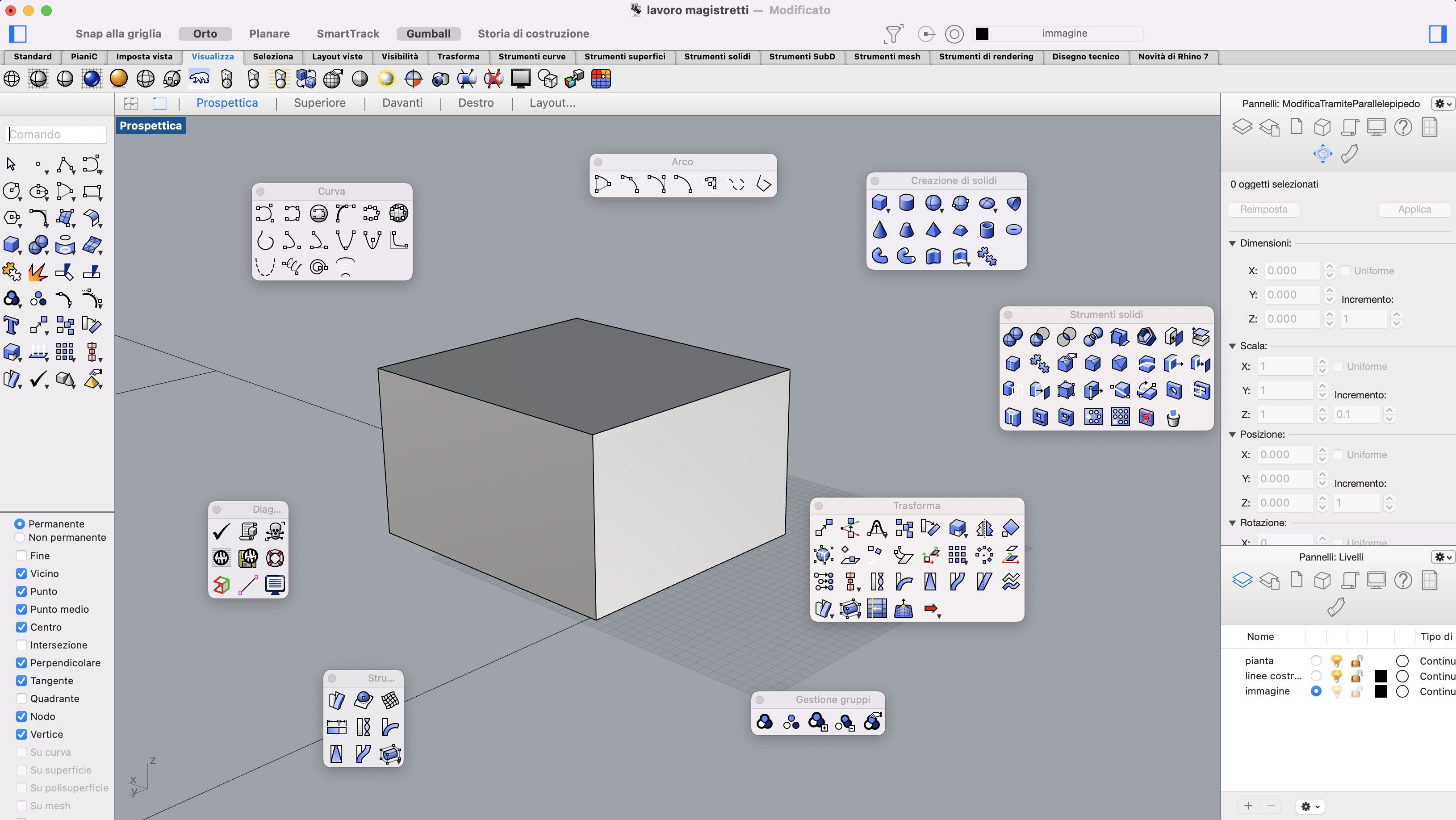 Nella fig.01, vediamo la schermata di lavoro di uno dei più famosi software di modellazione 3D. L'interfaccia del programma permette di organizzare le varie palette degli strumenti a piacimento e secondo le esigenze dell'utente, anche se il risultato a volte potrebbe sembrare confusionario. Inoltre, il programma permette di accedere agli stessi strumenti da percorsi diversi: nella barra di sinistra, gli strumenti sono raggruppati e distinti da un'icona di uno strumento presente nella categoria, mentre più in alto, in orizzontale, troviamo gli stessi strumenti raggruppati per categorie ma visualizzabili per intero selezionando la categoria desiderata. Gli stessi strumenti sono selezionabili anche dal menu in alto, dove sono elencati solo come testo. Gli stessi gruppi di strumenti sono anche estraibili dalla palette preimpostata e si possono posizionare a piacimento nello spazio dell'interfaccia del programma. Per finire, gli strumenti sono richiamabili anche dal tab del prompt a sinistra per le ultime versioni del programma, il che aiuta davvero a velocizzare il flusso di lavoro. Come analizzato, il programma offre ben cinque percorsi diversi per ottenere gli stessi strumenti.