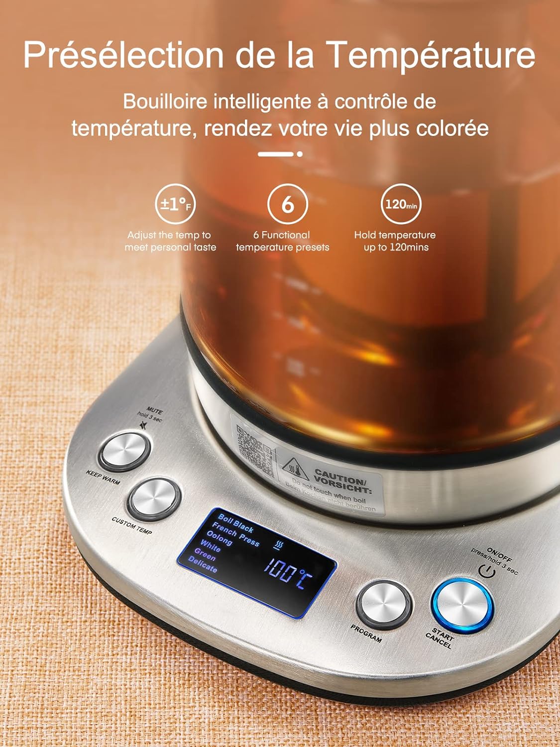 Nella fig.04 vediamo un bollitore che consente di impostare temperature precise predefinite per preparare il proprio tè preferito o cucinare con temperature specifiche. Tuttavia, è possibile ottenere lo stesso risultato selezionando il tasto base che porta l'acqua a ebollizione e controllando la temperatura raggiunta sul display.