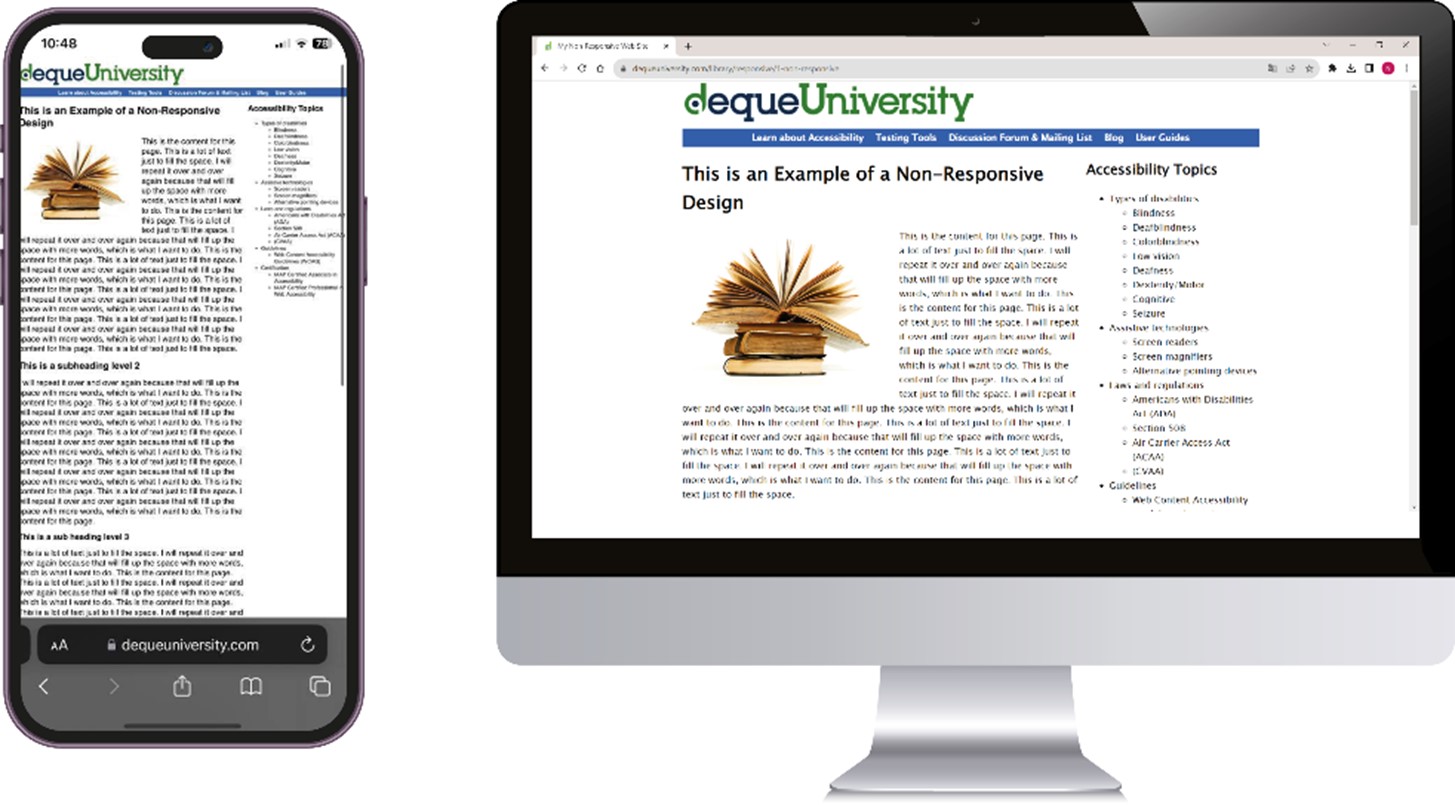 In questo esempio vediamo come una scorretta formattazione del testo risulti molto scomoda quando le dimensioni dello schermo sono ridotte, come nel caso di uno smartphone.