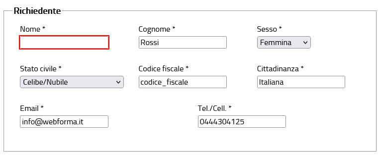 In fig.1 vediamo un form che l’utente deve compilare, ipotizzando che non siano presenti gli asterischi, l’utente non è in grado di comprendere quali informazioni sono obbligatorie e quindi solo dopo aver premuto l’invio del modulo, la pagina indica in rosso le informazioni che non sono state inserite o addirittura non le evidenzia, portando l'utente a dover ricontrollare l’inserimento di tutti i campi.