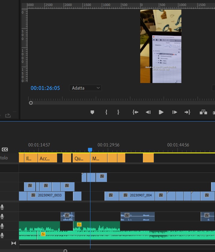Anche nei programmi di editing video (02), dove il progetto scorre, è fondamentale capire dove ci si trova nella timeline del progetto. Per questo il segnale azzurro in questo caso permette di capire a colpo d’occhio dove si è all’interno del progetto